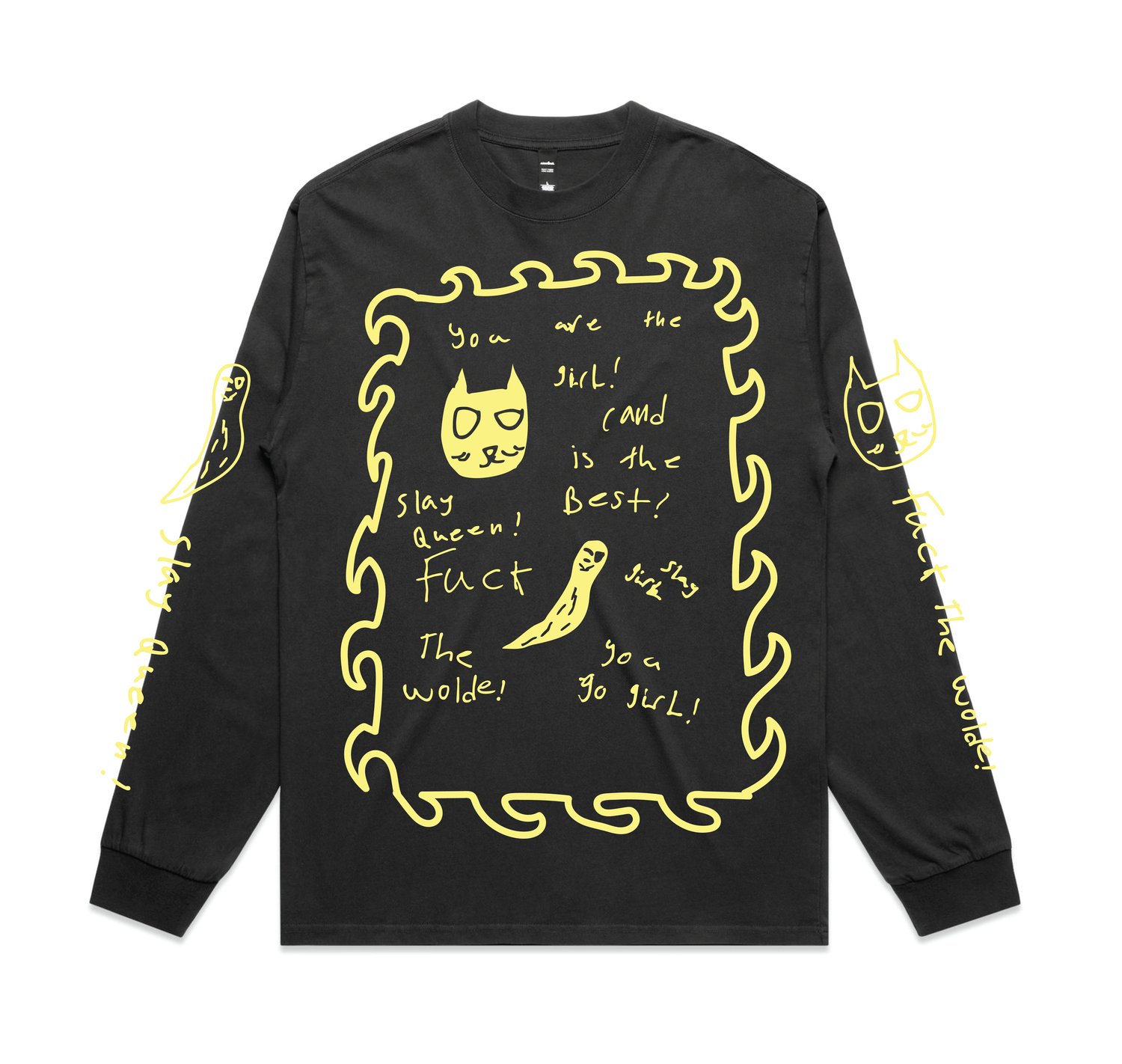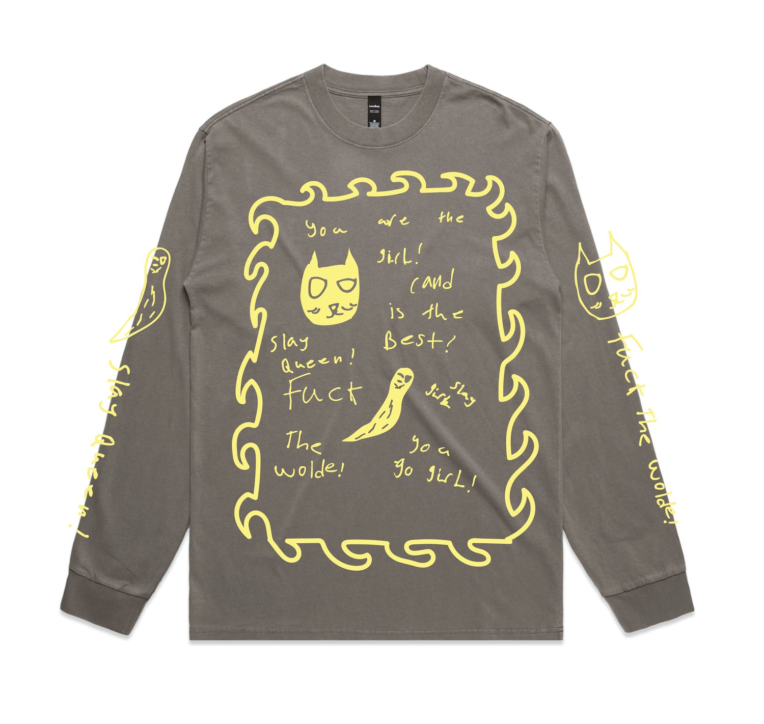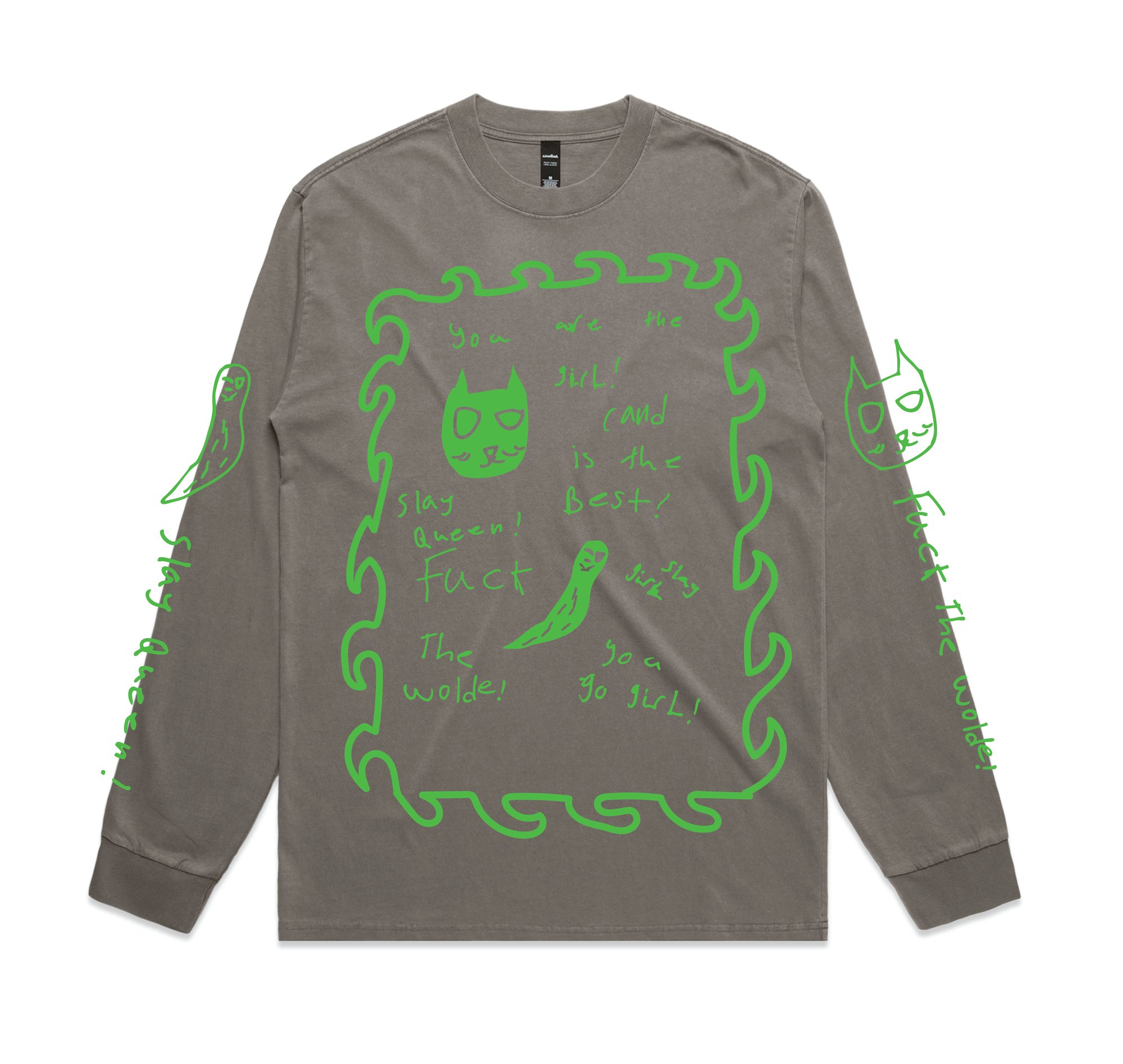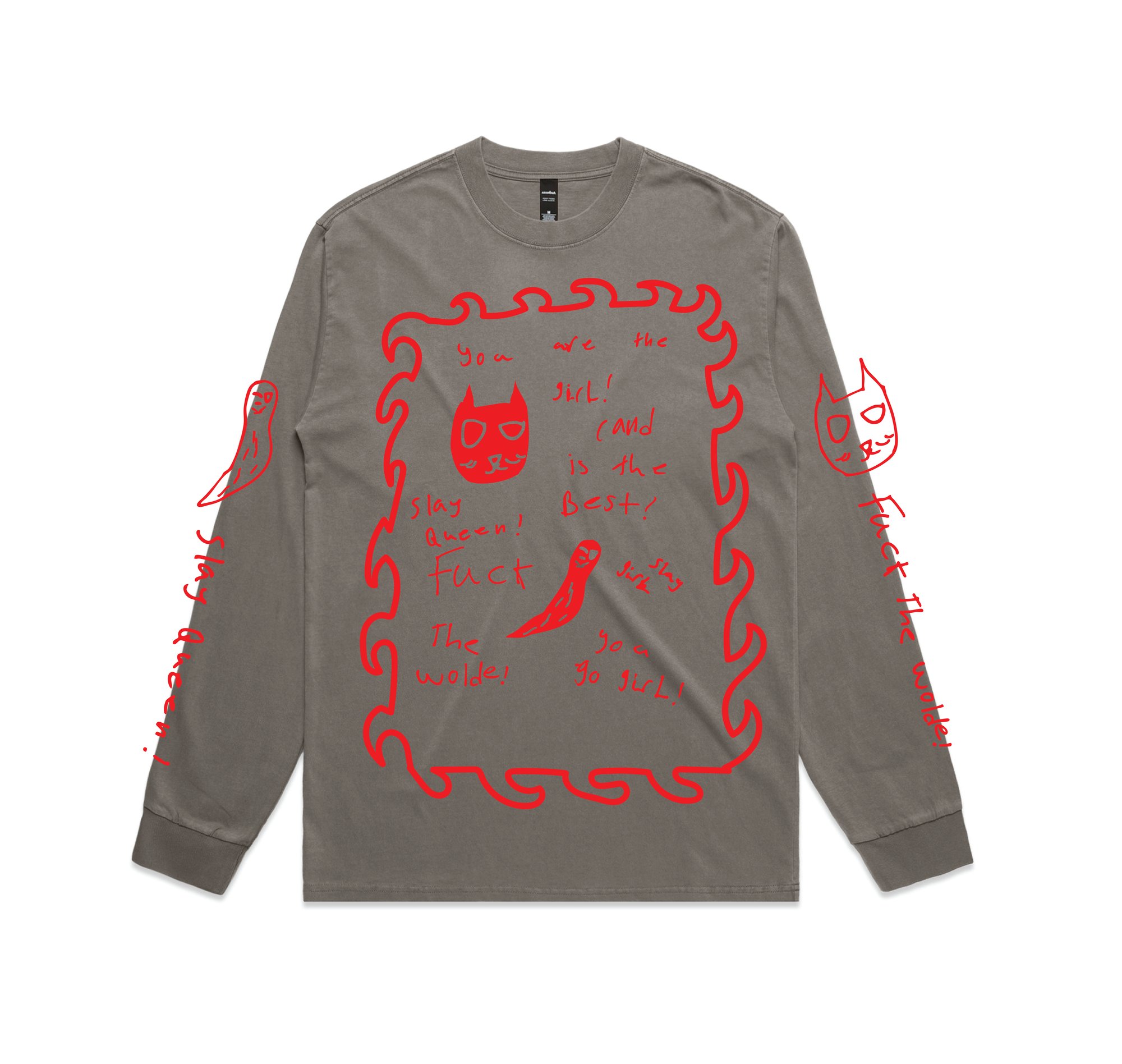 Printed on AS Colour heavy weight long sleeve in faded grey or faded black